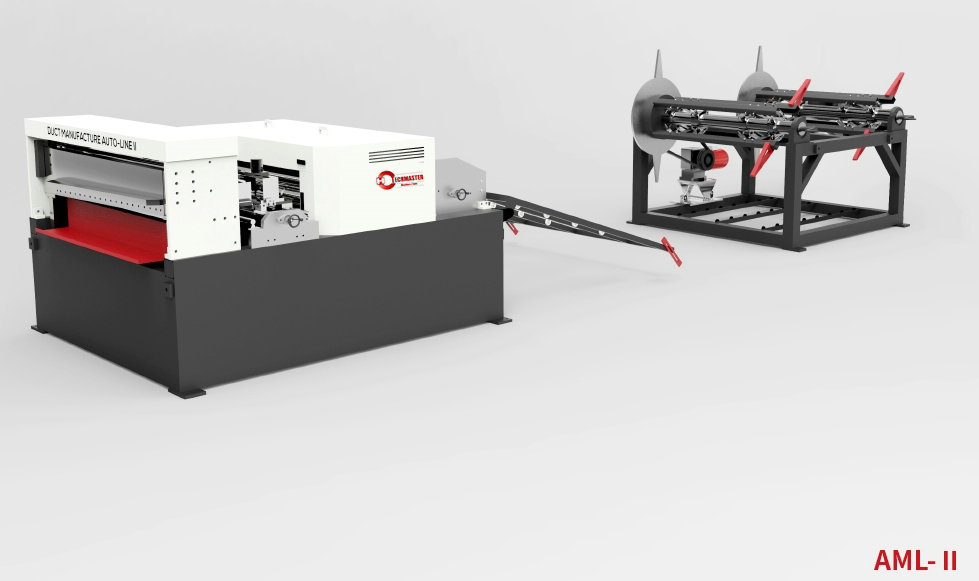 La línea de producción de conductos II se basa en la línea de producción para Tipo I Agregar que la unidad de corte se usa para el conducto de aire, esta línea de producción está compuesta por una unidad de desilio, nivelador y surcante, 'V ' y '口 ' Unidad de muesca, composición de la unidad de corte. La configuración estándar de la unidad de muesca 'v ' y '口 ' hace que el conducto de brida TDF, la unidad de muesca '口 ' también se puede usar para producir brida TDC. Control eléctrico Con servicio de servo completo, el sistema de control tiene un sistema de retroalimentación de circuito cerrado, alta precisión y estabilidad. La velocidad de funcionamiento máxima de 16 m / min. La tolerancia de longitud es ± 0.5 mm, error diagonal ± 0.8 mm.