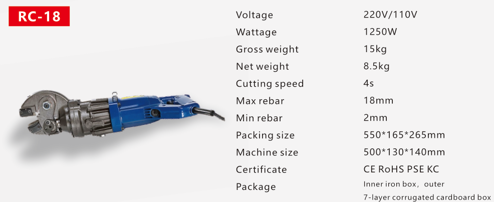 Cortador de barras de refuerzo portátil RC-18