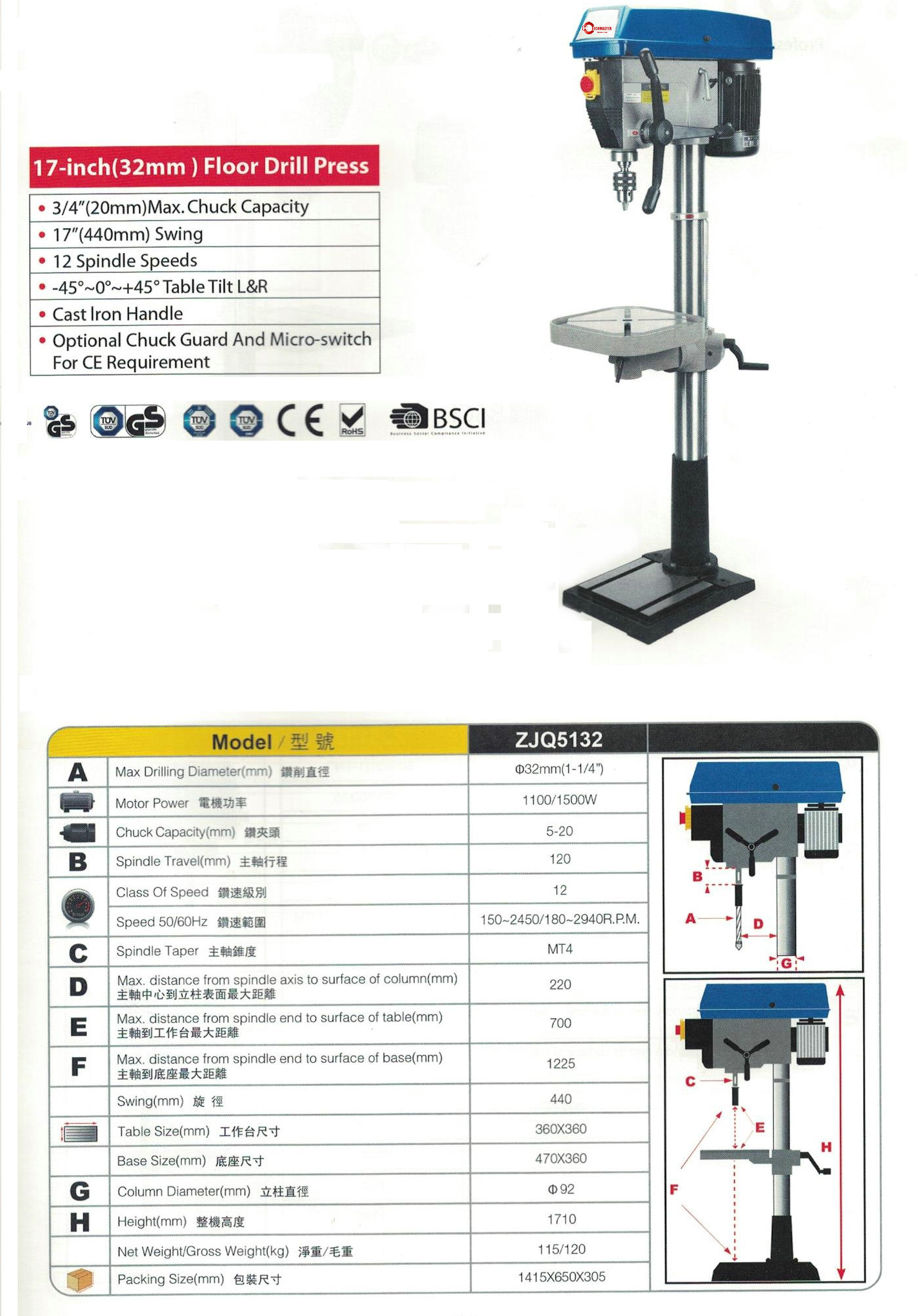 ZS1725F/ZS2032F Máquina de taladro y golpe