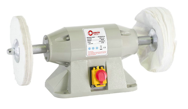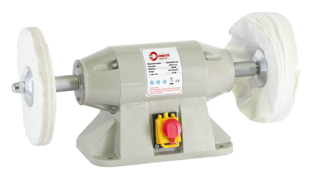 Es Electroafiladora Profesional Con Rodamientos de Bolas. Centraje de Giro de Alta Precisión y Bajo Nivel de Sonoridad. Interruptor de Desconexio de Seguridad. Muelas de Algodón y Protectorados incluidos. EN Granulador de banco profesional con rodamientos de bolas, centrado de alta precisión y bajo ruido. Interruptor de corte de seguridad. Se incluyen las ruedas y la guardia de Cottong. FR Touret Professionnel Avec Montage Sur Roulements à Billes. Touret de Haute Précision et de Bas Niveau Sonore. Interruption D'Rrêt d'Urgence. Roues de Cotton et verres protegidos incluses. | |||||