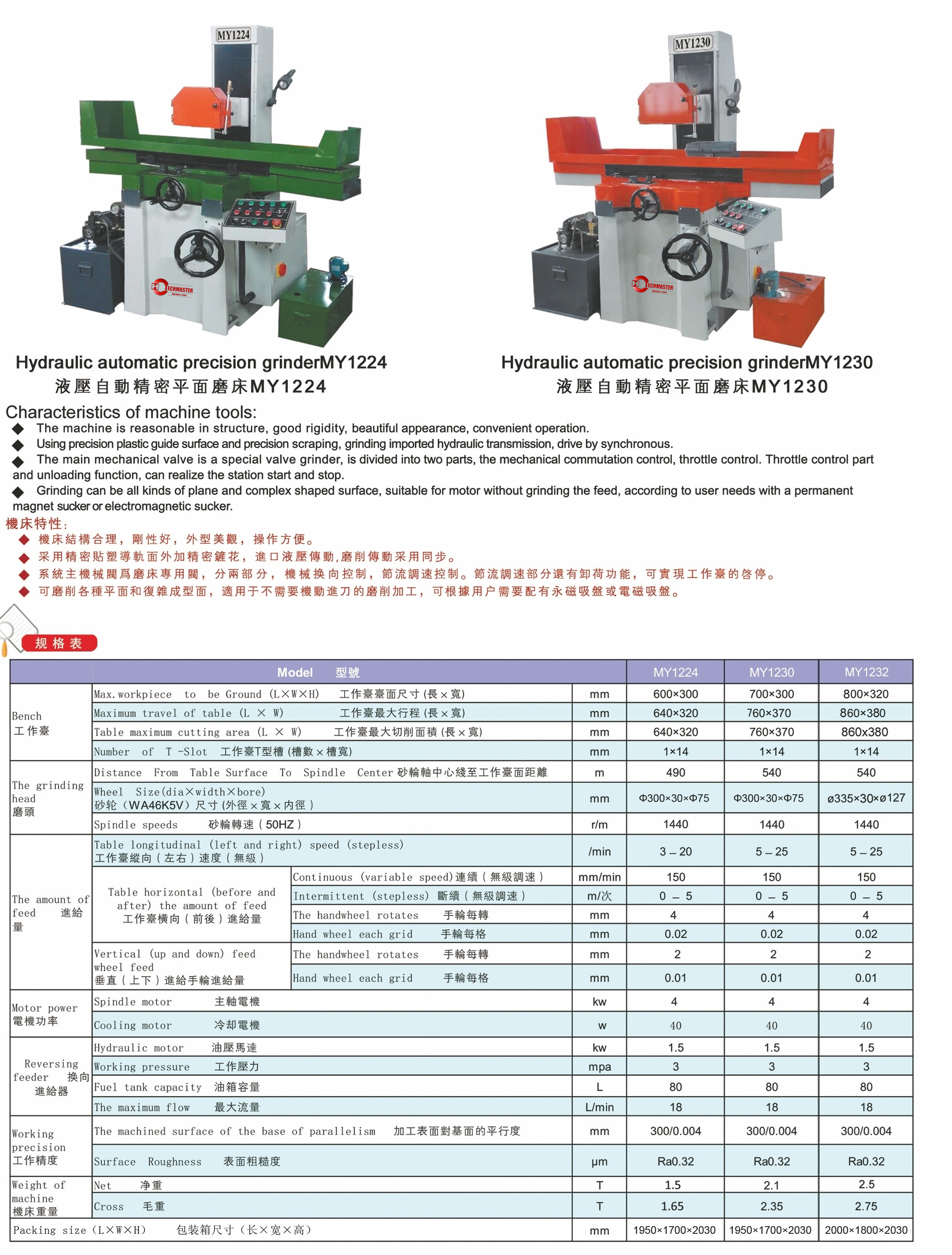 Grinder de superficie de precisión automática hidráulica My Series My1224/My1230/My1232