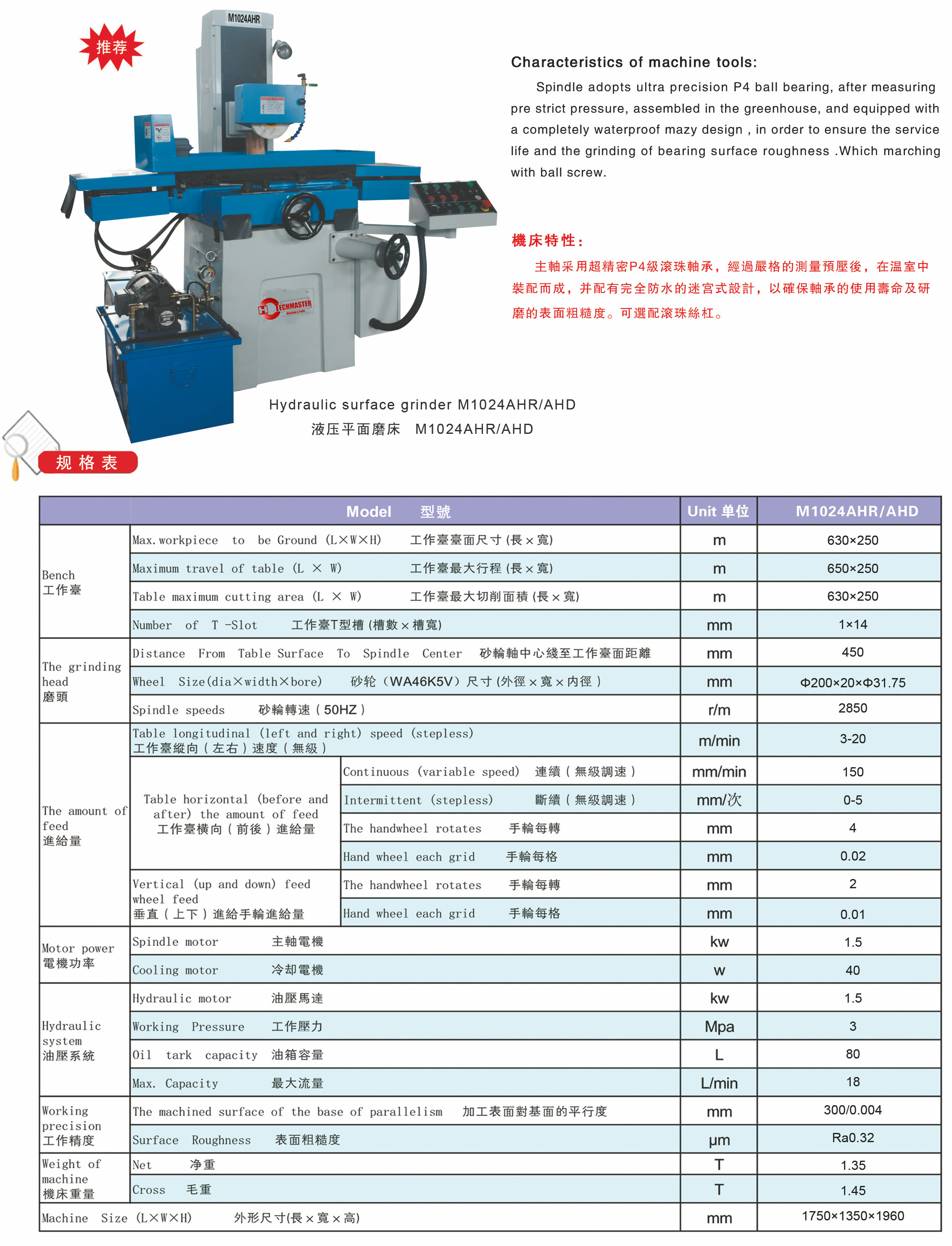 Grinder de superficie de precisión automática hidráulica mi serie M1024AHR/AHD