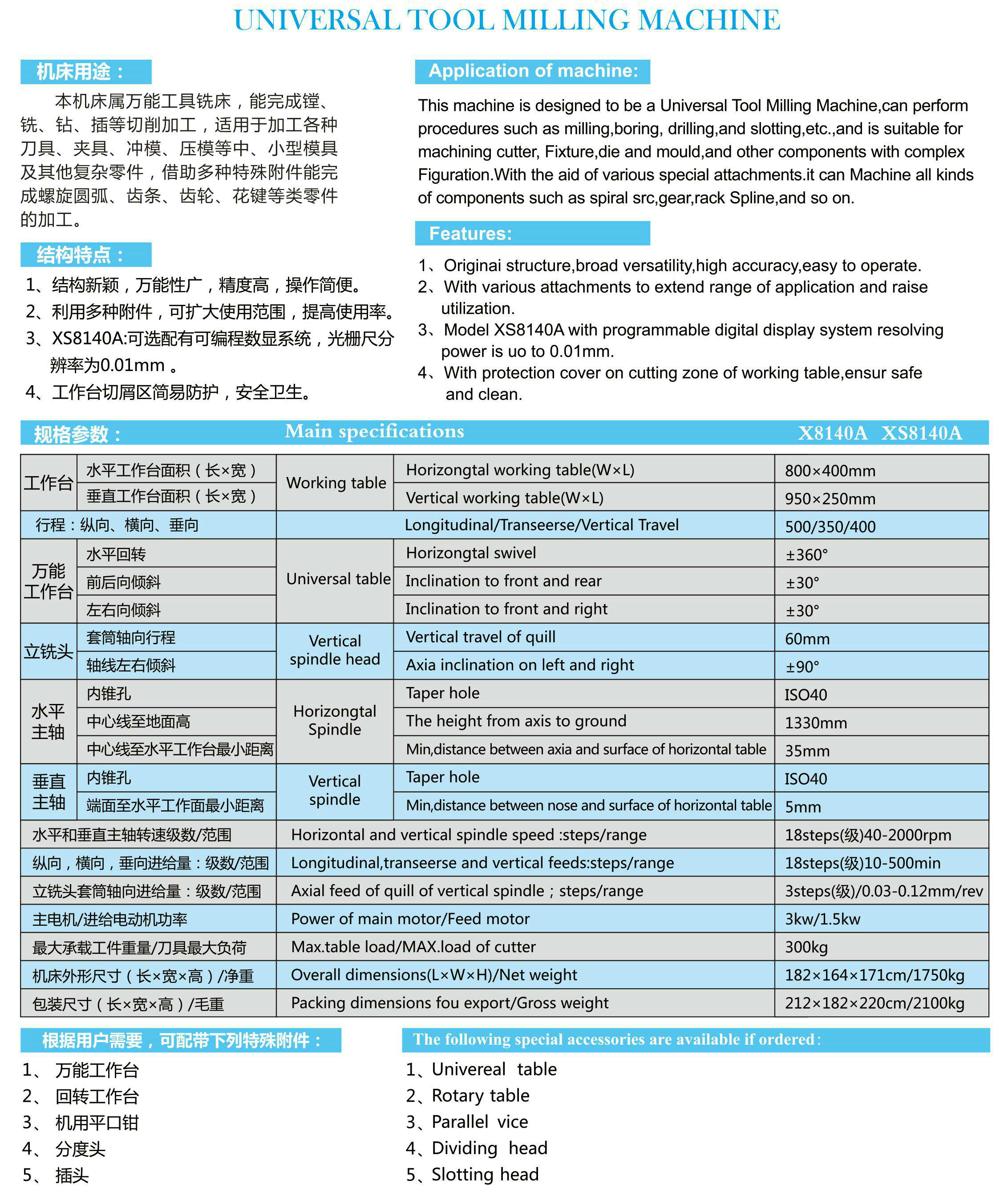 Máquina de fresado de herramientas universal XS8140A (DRO)
