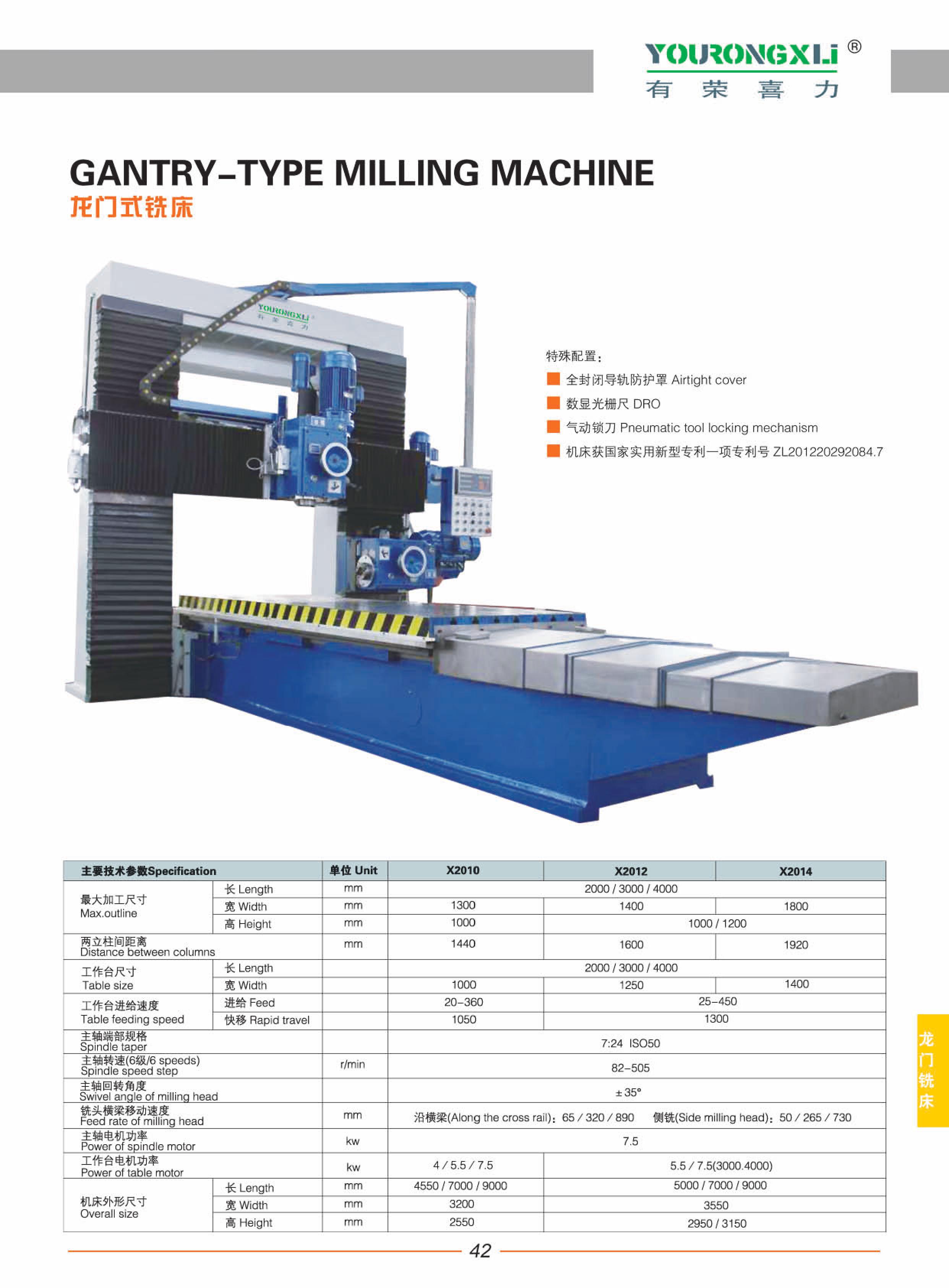 Máquina de fresado de tipo pórtico X2010-X2012-X2014