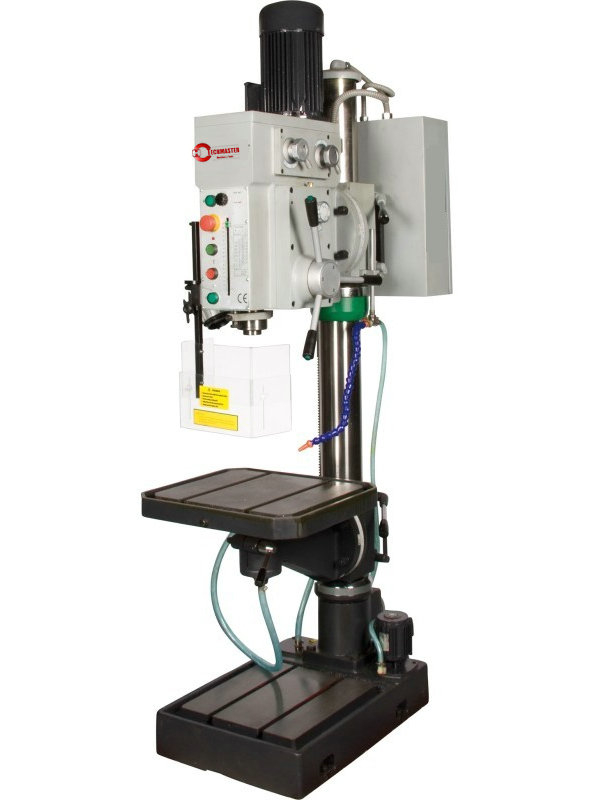 Esta máquina de perforación de columna tiene ruedas endurecidas y en marcha. La profundidad de perforación se puede establecer utilizando la parada de profundidad ajustable. Equipado con un eyector de herramienta y un motor de 2 velocidades. El huso gira tanto en sentido horario como en sentido antihorario. Con autofeed. La cubierta de tirón está equipada con un interruptor de autostop. La cabeza se ajusta verticalmente sobre una rejilla. Ideal para las líneas de producción.