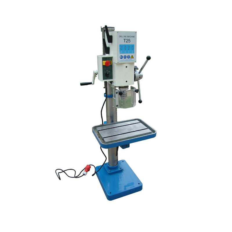 1.uras máquinas de perforación vertical T25 tienen una función de altura ajustable y giratoria en la unidad de la cabeza y la mesa de trabajo, pueden proporcionar un viaje de perforación adecuado para varias piezas de trabajo en diferentes tamaños.