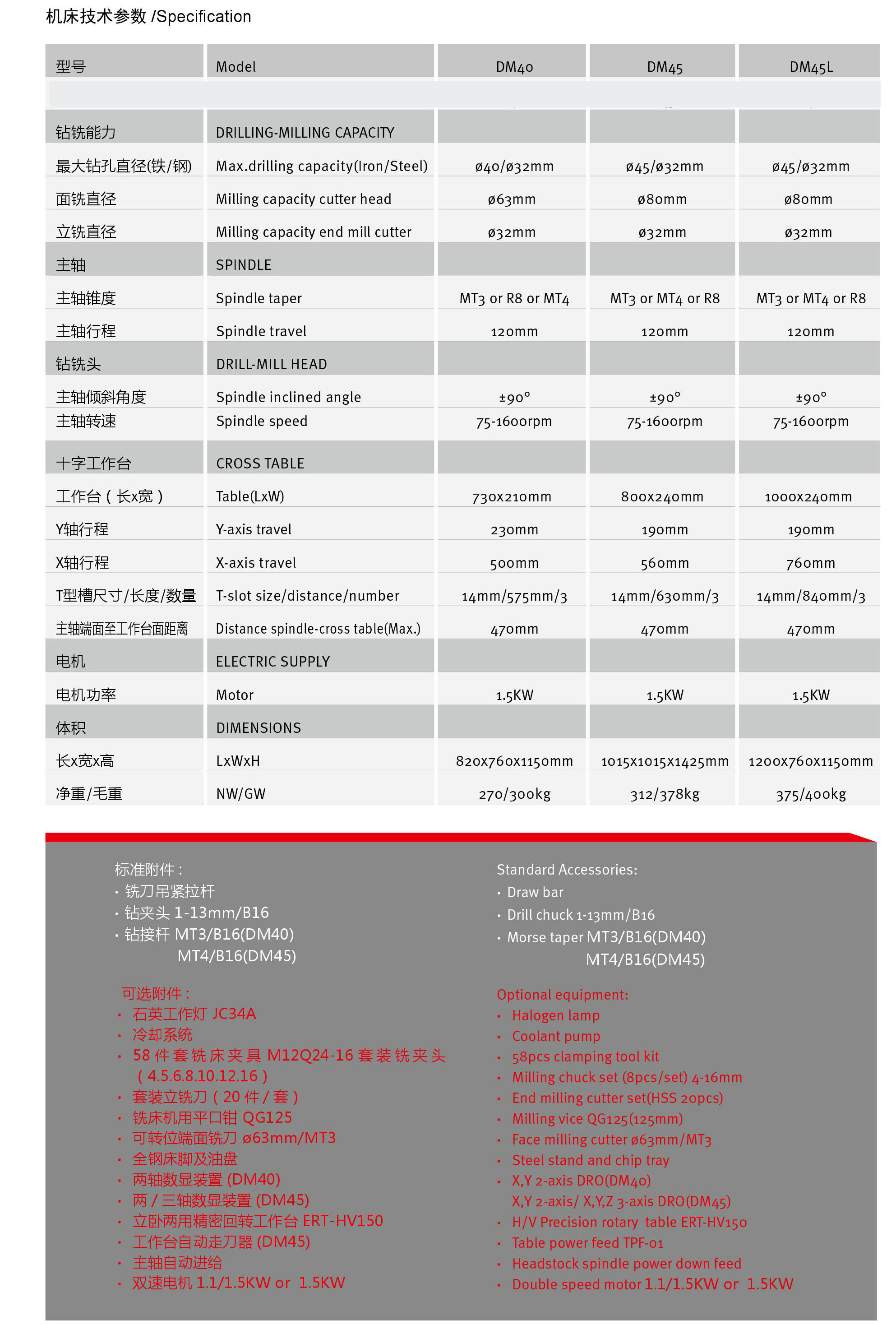 Máquina de perforación y fresado de la cabeza engranada DM40/DM45/DM45L