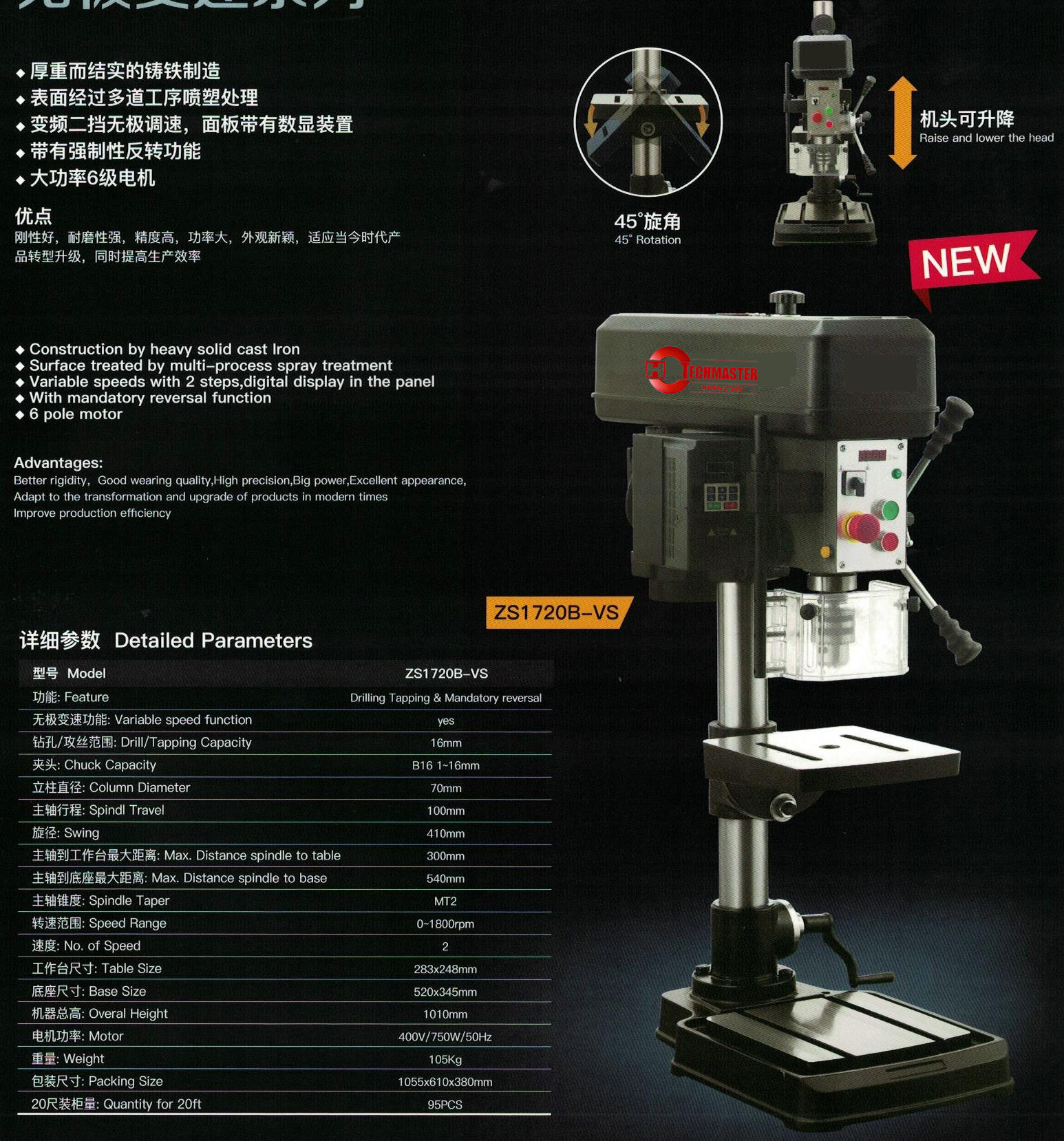 Máquina de perforación y ritmo de velocidad en varía ZS1720B -VS