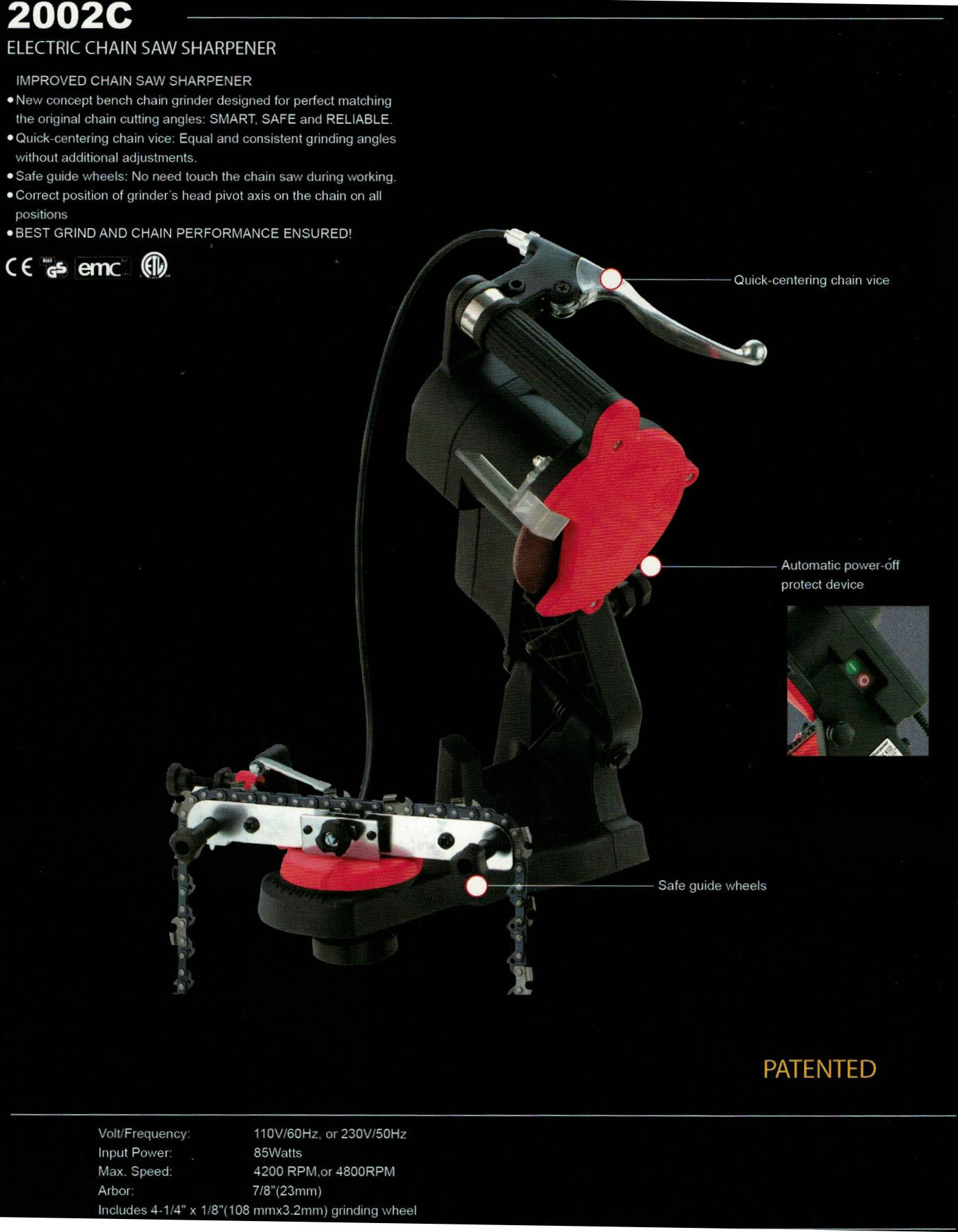 Santificador de sierra de cadena eléctrica 2002c