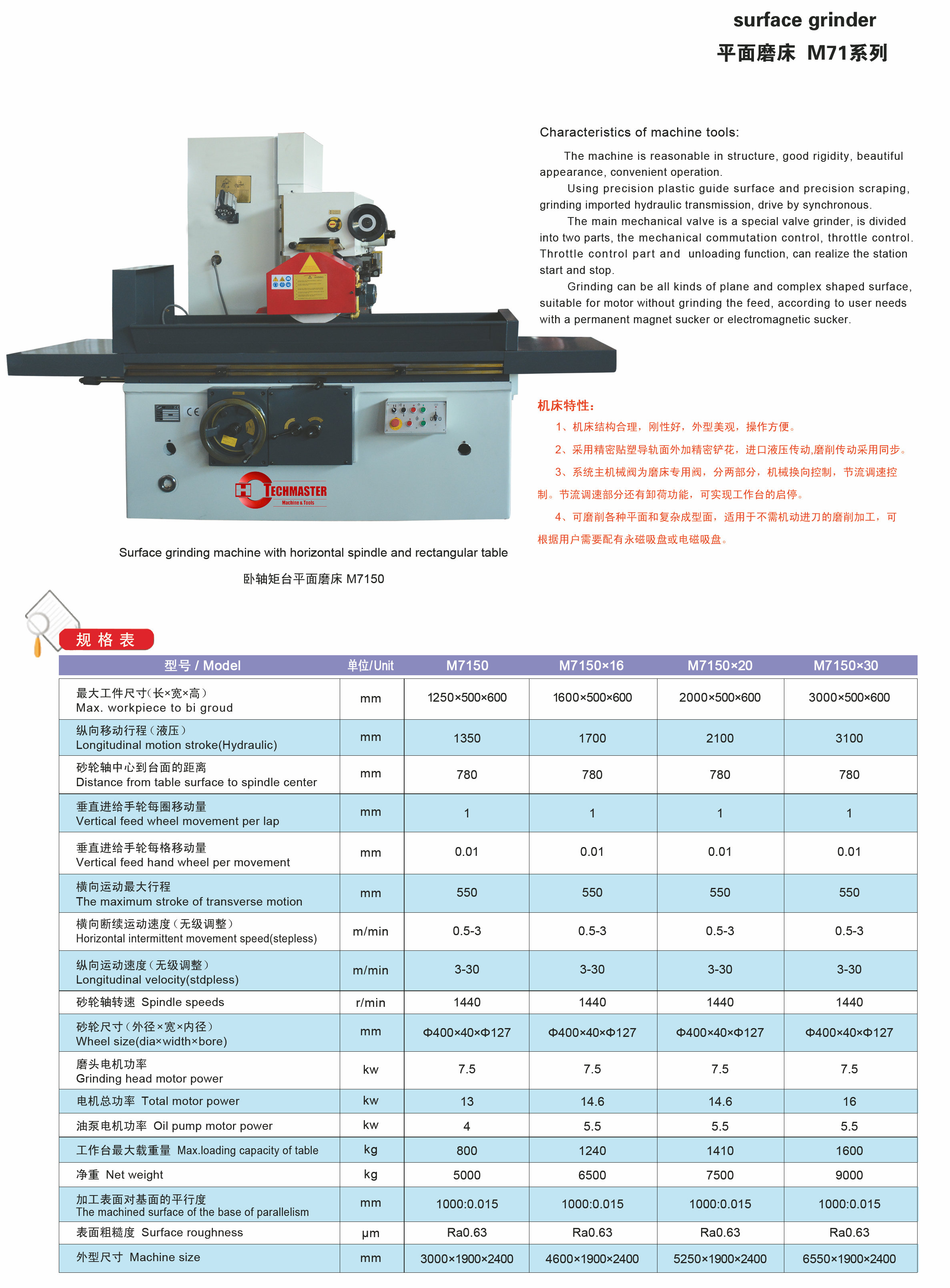 Surface Grinder M71 Serie M7150 -M7150X14-M7150X16-M7150X20