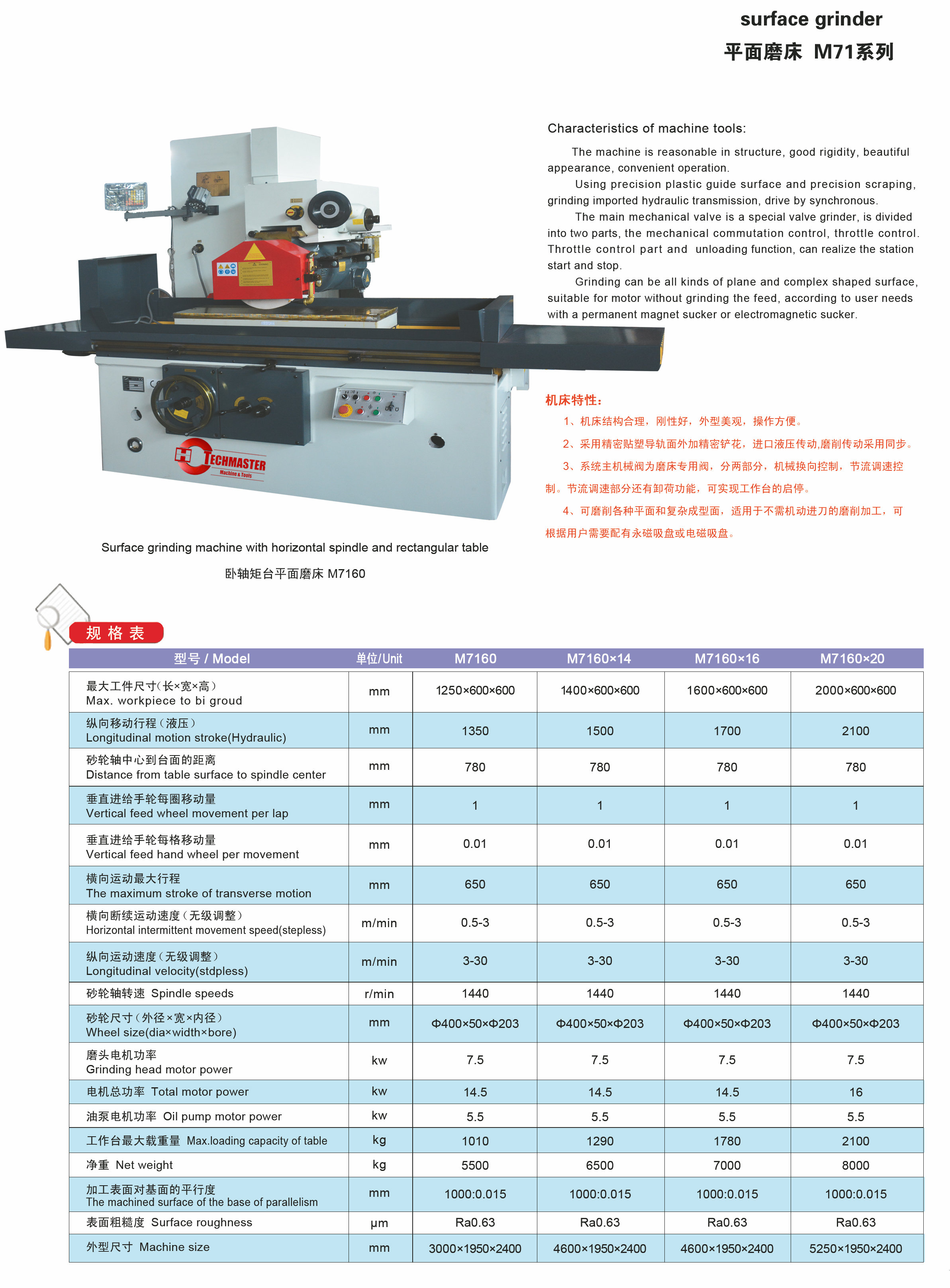 Surface Grinder M71 Serie M7160 -M7160X14-M7160X16-M7160X20