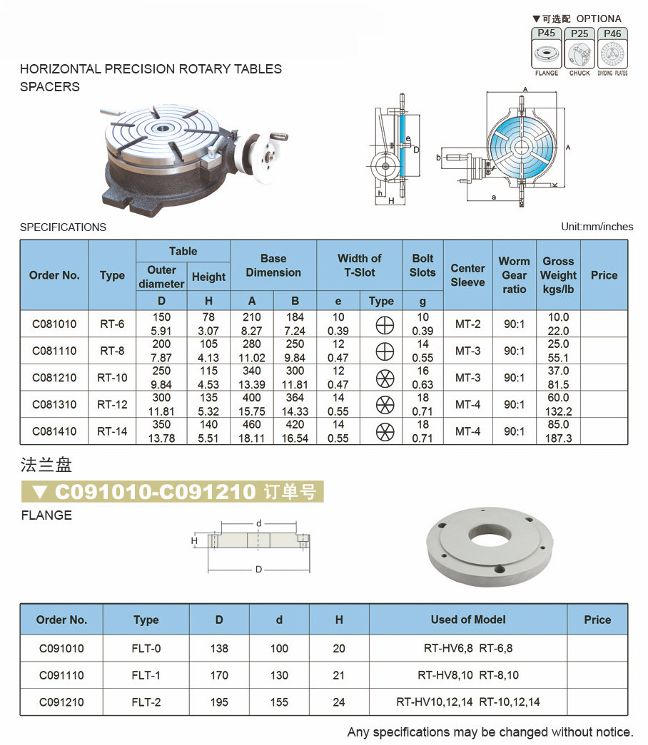 Tablas rotativas de precisión horizontal