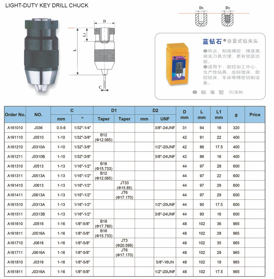 Taladro de perforación de llave de luz ligera.