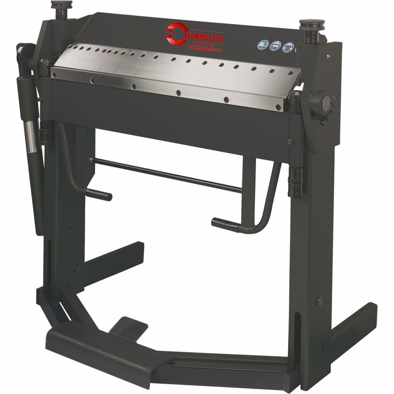 Máquina de flexión de ángulo de servicio pesado. La cuchilla superior está segmentada y los segmentos se pueden sacar. La pieza de trabajo es la abrazadera a través del control del pie, lo que deja ambas manos libres. La máquina está equipada con un cilindro y una cuchilla inferior ajustable, lo que facilita el metal de flexión. Diseño europeo.